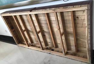 面板为原木橡木板咬合式组合,内龙骨为同材质木方框架结构。一套讲台分两至三部分制作。表面不露钉,保持木材原色,表层打磨后处理光洁。整个讲台用材需分成小段拼接而成,以防止原木大料易裂。台面、侧边木方边沿处有咬合工艺,经内部框架横梁固定。讲台边沿处为直角直边,外侧两直角需手工做圆角工艺打磨导角R50处理。侧边短木板木纹顺同面板纹路连接,保持整体木纹同方向。面板和侧板均采用同材质橡木原木,厚度大于36mm,确保踩踏不塌陷或鞋跟等锐器不穿透。内部龙骨框架均采用原木方、原木板支撑承重结构。带隔潮脚钉。