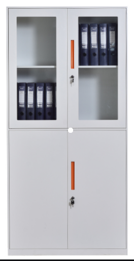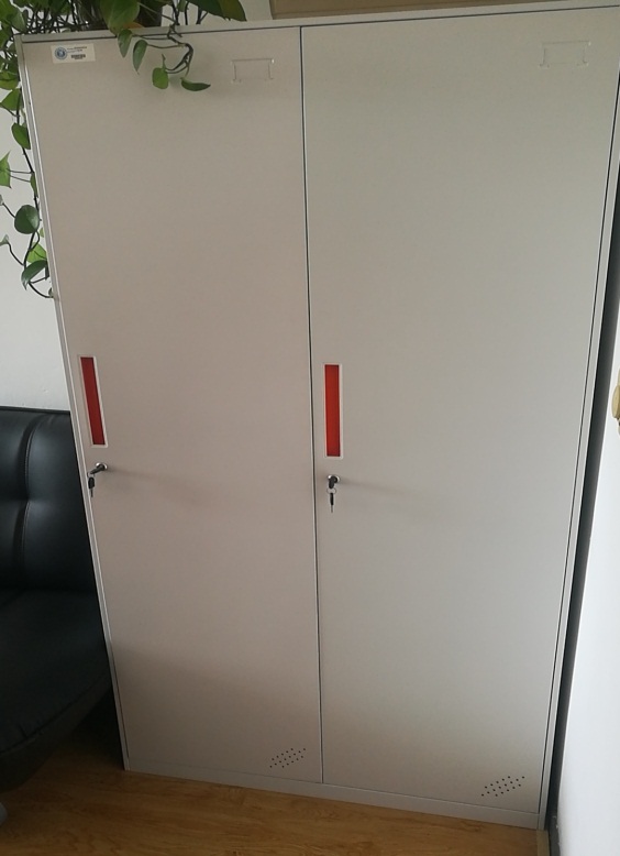 ④两柜门采用对开式,柜门整板无缝折弯、拼接,四周带加强拉筋。柜内带上、下层柜隔板,间距可调,隔板带加强拉筋工艺,上门为整板门框,非拼接裁剪门框,内嵌标准化平玻。门框边角对称无错位、翘角。